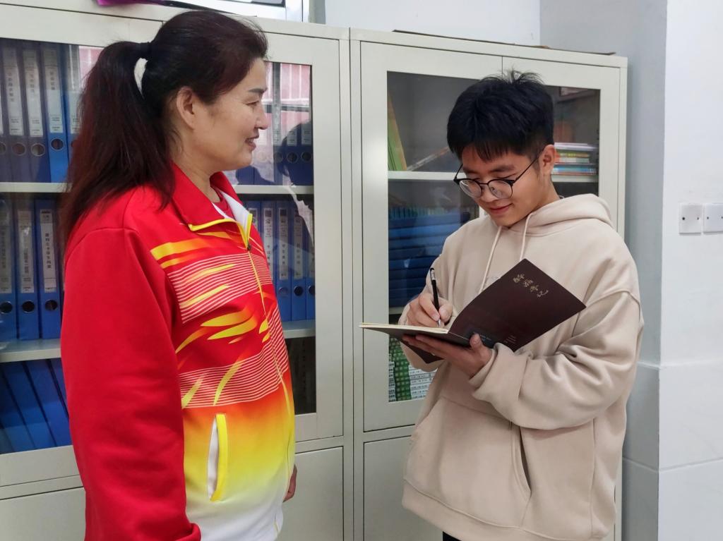 图为红船筑梦实践队成员与团支部老师交流