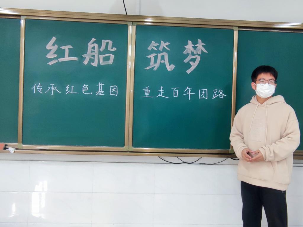 在徐老师的指引下,“红船筑梦”实践队成员们一同来到了教室,在老师的短暂介绍后,实践队员开始就“红船筑梦”实践队来到这里的目的和宣讲主题向同学们进行宣讲,随着对团史的介绍和对百年见团路的回顾,同学们也变得越来越配合和主动,对于实践队员们提出的问题也都积极举手回答。我们发现大部分的同学对于共青团的相关背景和知识还是比较了解的,包括建团的时间和相关的条例和纲领,在问到关于团史的发展历程、英雄人物和人物精神的时候,同学们所展现的都是对团史的崇高敬意和对于英雄人物的无限缅怀。当谈到在中国共青团建团一百周年之际为团做一百件事这个主题活动时,还有很多的同学毫不犹豫的提出赞成并且请求加入。