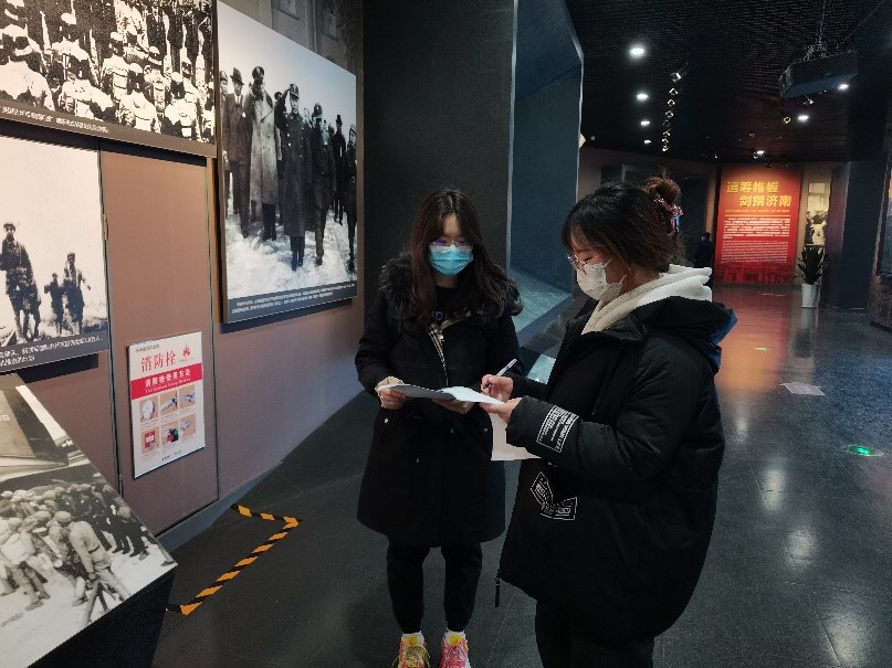 图为实践队队员在济南革命纪念馆采访游客