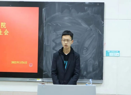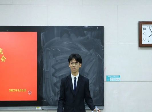 于S206举行2022届团委学生会部长换届竞选答辩,学院党委副书记刘伟出席,2022届团委学生会主席团成员担任评委。