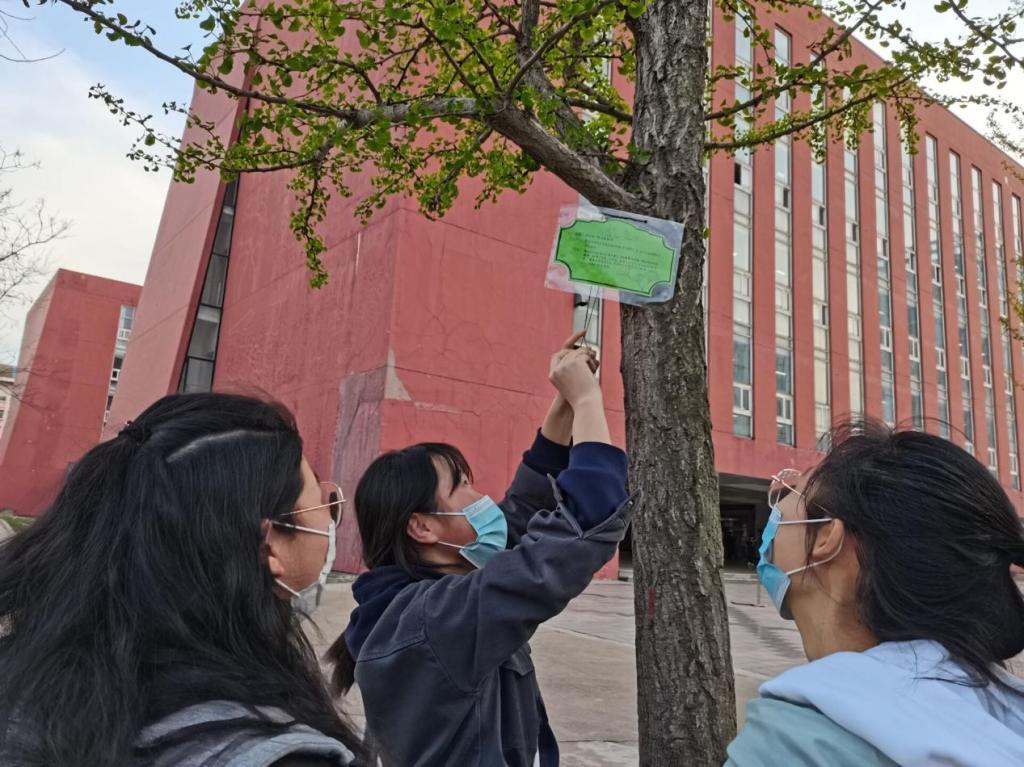 志愿服务人员将树牌的缺失情况登记汇总成表,为之后的“我为小树更新牌” 绿色校园志愿服务活动打下坚实基础;4月6日,召开讲解会,对2020级和2021级班团进行前期培训,说明树牌的设计与制作原则、讲解挂树牌活动的基本流程并确定最终分区分组;4月6-9日,各班班长带领部分同学到达本班负责区域,联系专业老师确定树木类型以及各树种数量,以便后期树牌制作的任务分配;4月9-13日,各班完成树牌的初步设计制作;4月13日,2020级以及2021级团支书协同社会实践与志愿服务部成员共同完成树牌的塑封及打孔工作,树牌制作最终完成;4月13-16日,各团支部以班级为单位完成树牌悬挂工作。麻豆在线