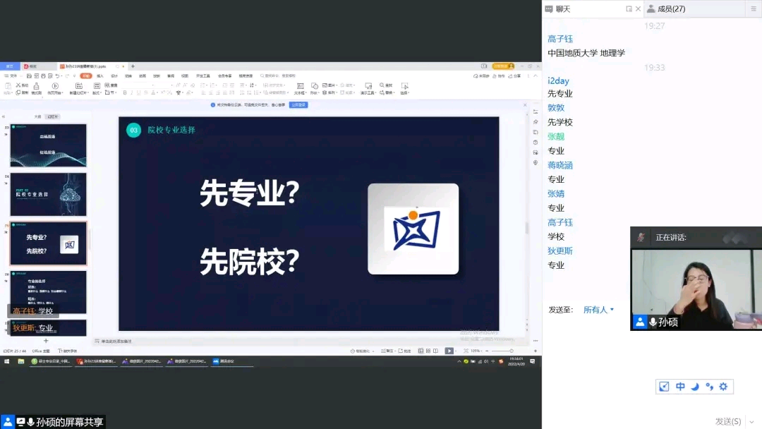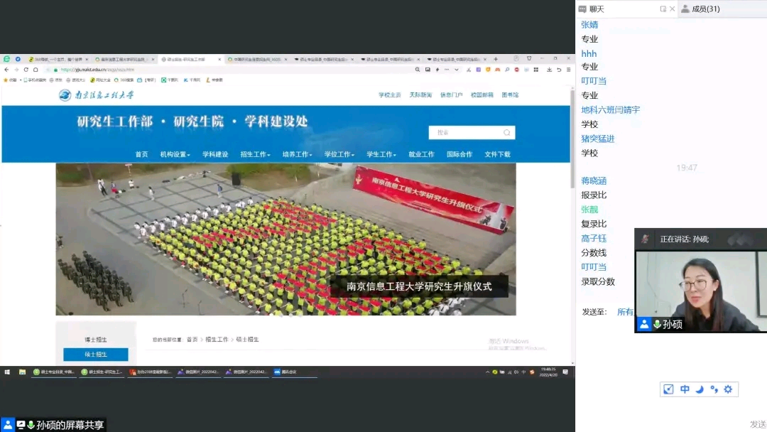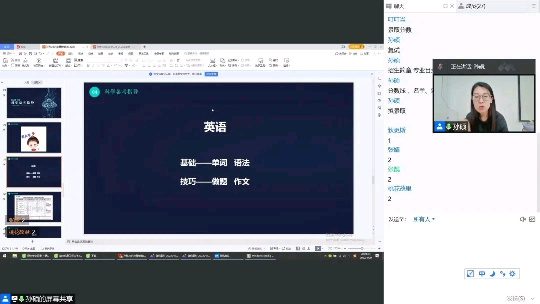 举办日照跨考23考研线上专场讲座,跨考考研孙硕老师主讲,2019级全体同学参加。