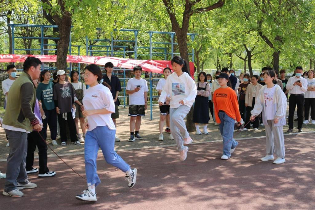 党委副书记刘伟、团委书记李梅、2018级辅导员田青、2021级辅导员董青出席活动。初赛中表现优异的20名单人跳、20名双人跳学生及8个跳大绳班级参加比赛。