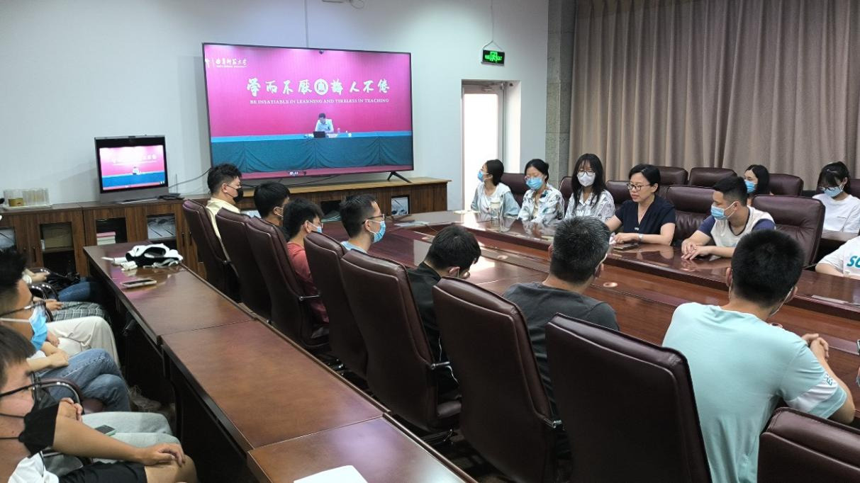 张立兴教授从明确立德树人根本任务、坚持两个基本标准、抓好三项基础性工作、坚持四个服务、坚持五维培养目标、肩负传六大重任六个方面,深刻剖析习近平总书记关于教育的重要论述精神;结合其丰富的教育实践,倡导同学们在从教中做到“五个热爱”、要“拥有四心,心心向善”,在学思悟践中践行一名人民教师的使命担当。