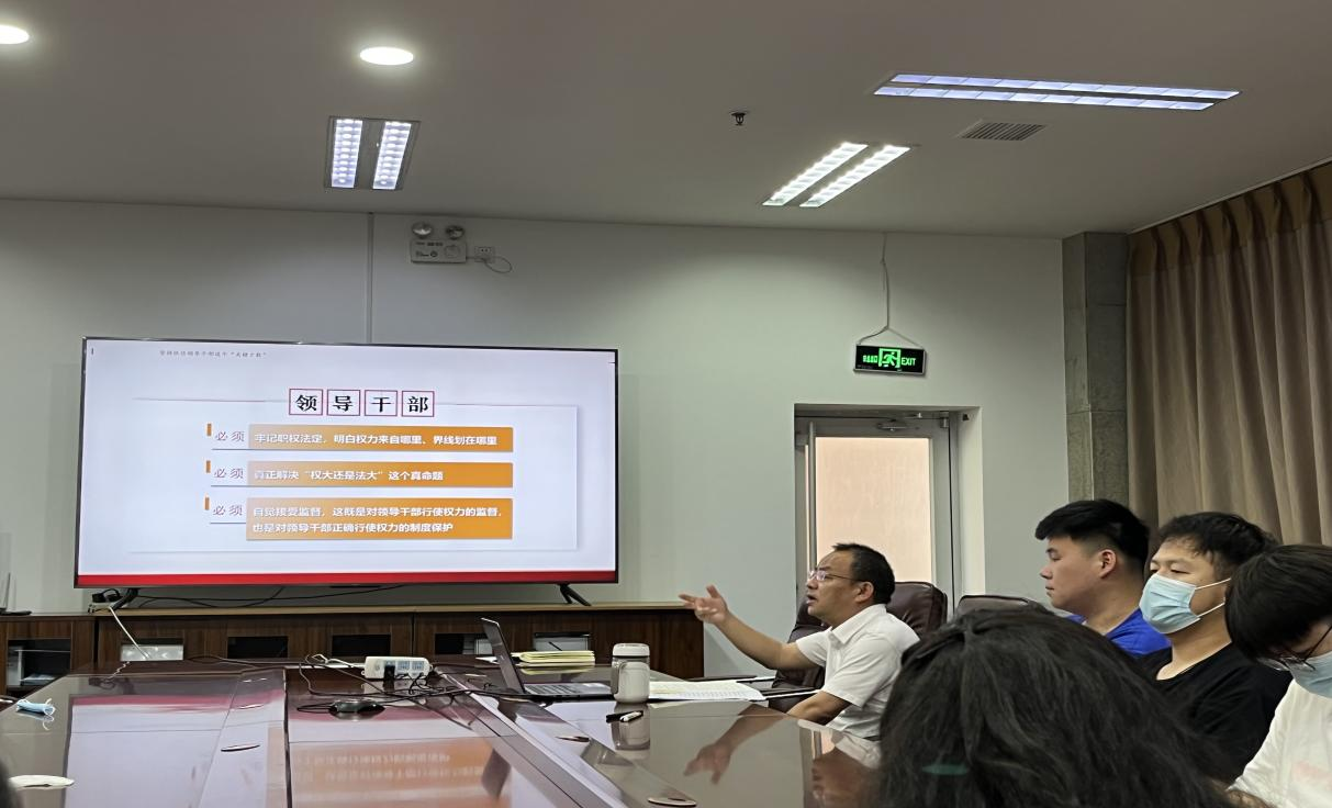 张强老师以习近平总书记关于“法治之下,没有免罪的‘丹书铁券’,也没有‘铁帽子王’”的重要论述开篇,为同学们提纲挈领的讲解习近平法治思想的主要内容,号召各位“准领导干部”敬畏法律、尊崇法治,做尊法学法守法用法的模范,发挥好领导干部这一关键少数的作用,争做人民的好公仆。