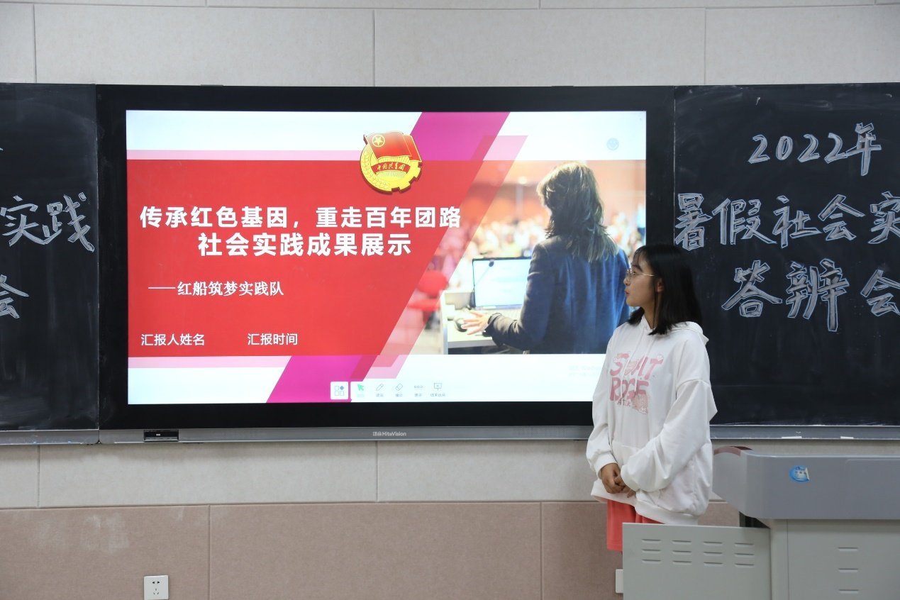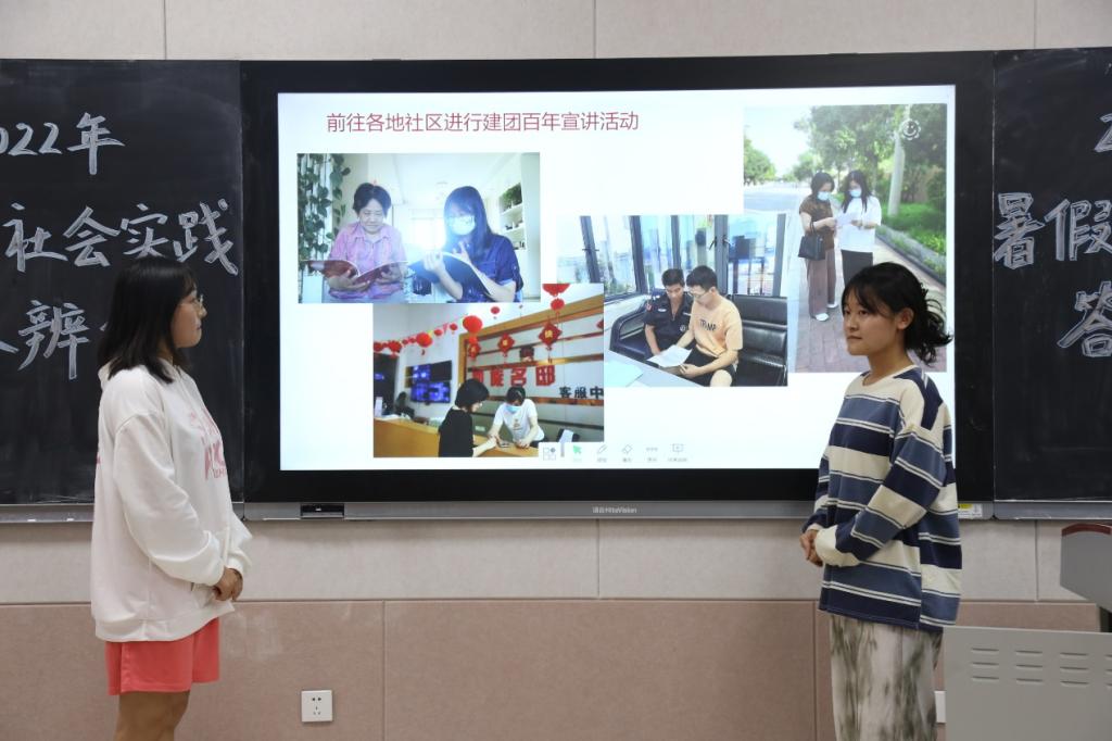 于S203召开暑假社会实践答辩会。学院团委书记李梅、2020级辅导员张乃宁以及2021级辅导员田青出席担任评委,各社会实践队伍代表、2021级班委代表及2022级部分同学参加。