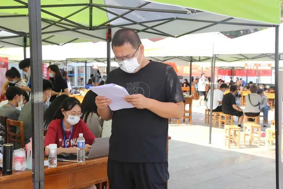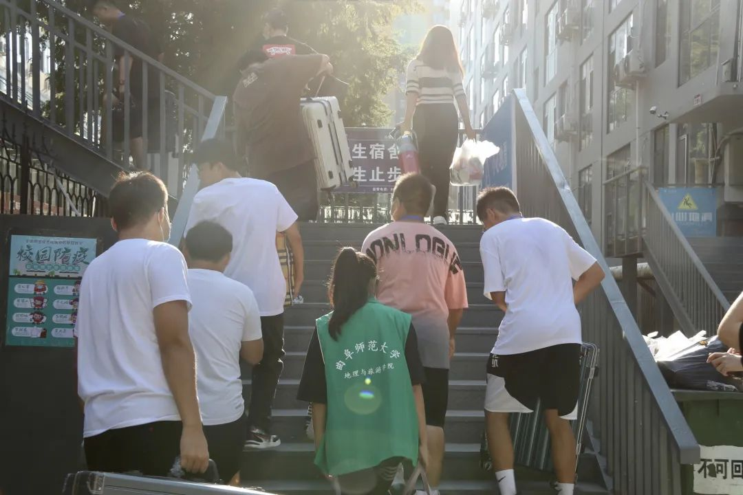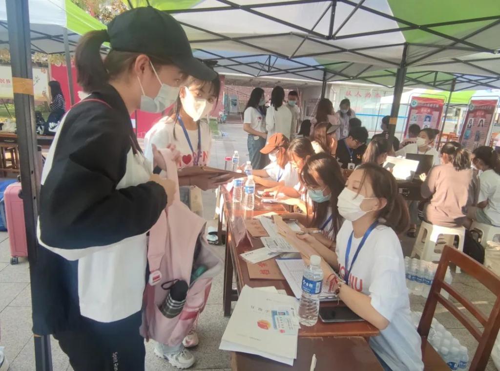团委学生会成员驻守,专人专职,负责信息录入和材料收取等工作。地理学子紧密配合,从新生报到前夕为新生打扫宿舍、搬运生活物资、核对报到信息,到迎新当天协助新生完成核酸检测、行李运送、整理床铺等一系列事项,用无微不至的服务传递着地理人的满心热情。