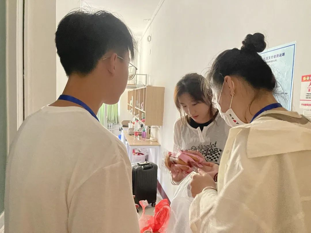 领导、辅导员老师走进新生宿舍,送去温暖的慰问和美好的中秋祝福。