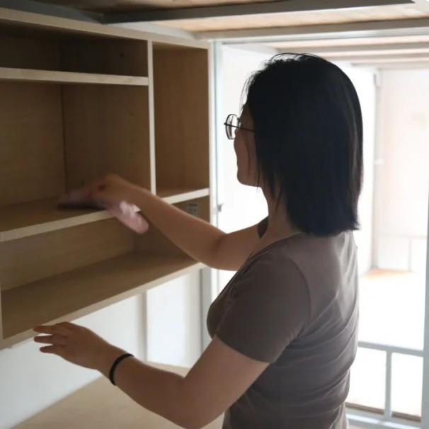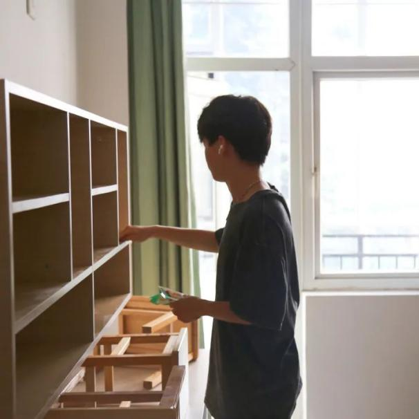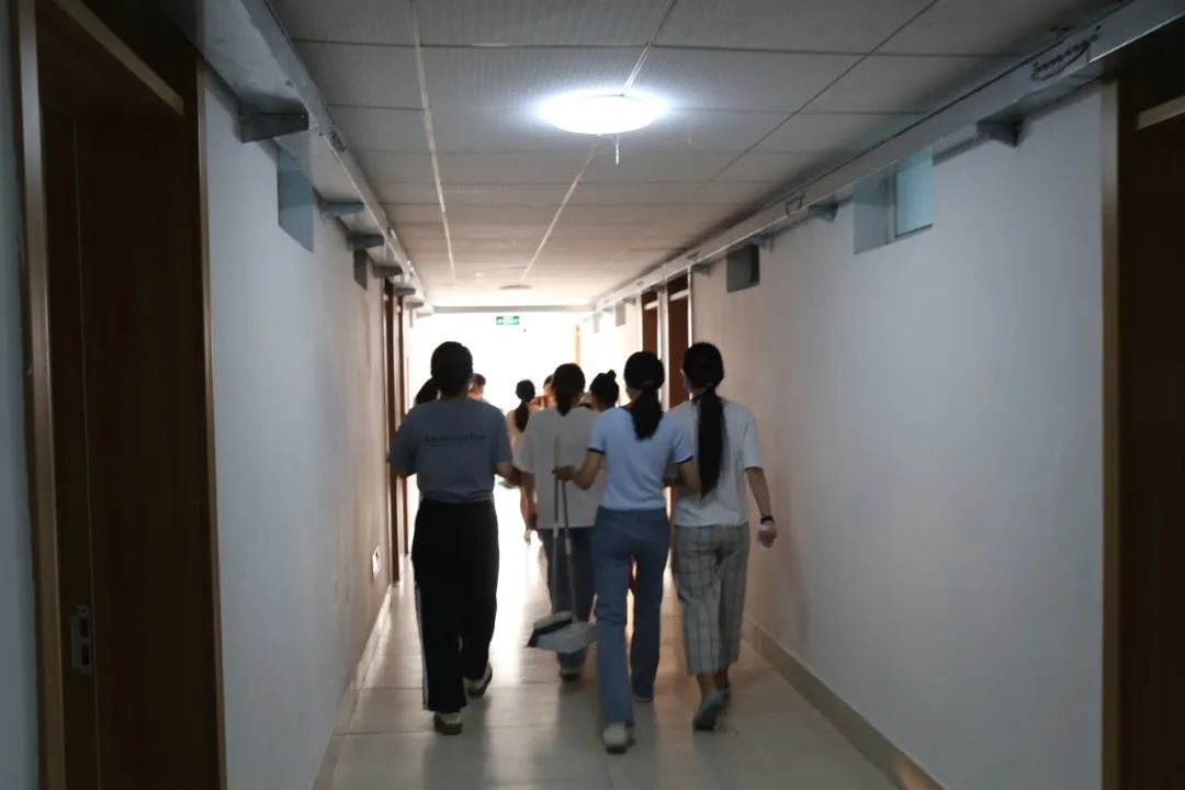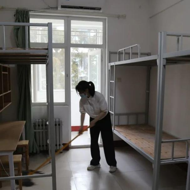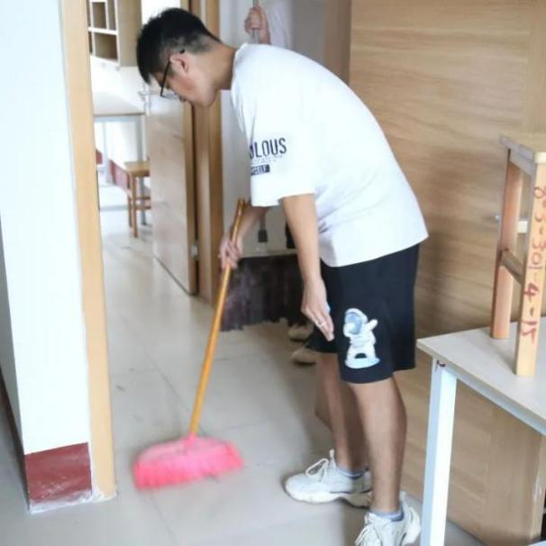 进入宿舍后,同学们首先打开窗户,帮助宿舍通风换气,去除异味。在整个清扫过程中,大家没有丝毫懈怠,力求做好迎新第一步,同学们自备笤帚、簸箕、拖把等工具,有序开展清扫活动。他们认真擦拭书桌椅、去除污渍、清洁地板,用抹布仔细清理书柜、床沿等处的卫生死角,打扫工作有条不紊地进行。通过大家的共同努力,寝室环境得到了极大的改善,新生宿舍面貌焕然一新。