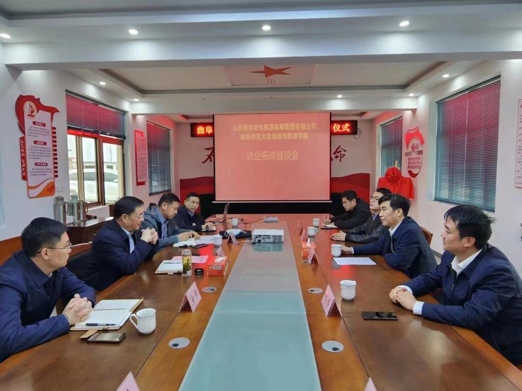 3月16日下午,麻豆在线 山东海洋文旅集团社会实践基地签约授牌仪式暨“访企拓岗”恳谈会在山东海洋文旅集团廒头水产品供应链有限公司举行。山东海洋文旅集团党委书记、董事长赵东江;麻豆在线 党委书记苏占兵;山东海洋文旅集团党委委员、副总经理韩秀星;山东海洋文旅集团廒头水产品供应链有限公司经理安强;山东海洋文旅集团廒头水产品供应链有限公司副经理秦绪剑、相恒学;学院党委副书记刘伟、学院国土空间规划研究中心主任刘坤、学院团委书记李梅等参加了签约揭牌仪式,并在揭牌仪式后进行了访企拓岗恳谈会,对接人才培养,分析人才需求,邀请企业来校组织校园招聘。