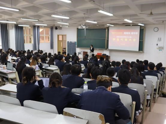 于A105召开2023届学生代表大会。本次会议由2023届团委学生会主席马晓诺主持,学院党委副书记刘伟、学院团委书记李梅、2020级辅导员张乃宁、2021级辅导员董青出席会议,会议应到代表180名,因病、因事请假26名,实到会正式代表154名,符合相关规定。