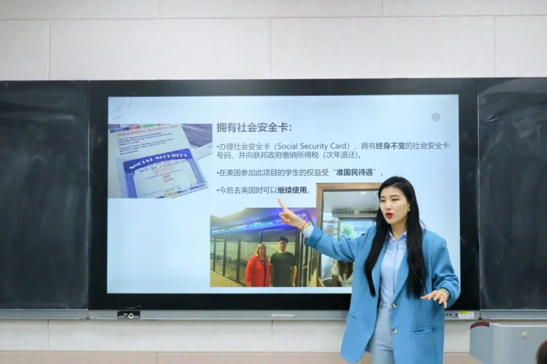 于S202举办暑期赴美带薪实习介绍会,IEC国际文化交流中心韩瑾凤、2020级翻译学院学生孙晓雪主讲,麻豆在线