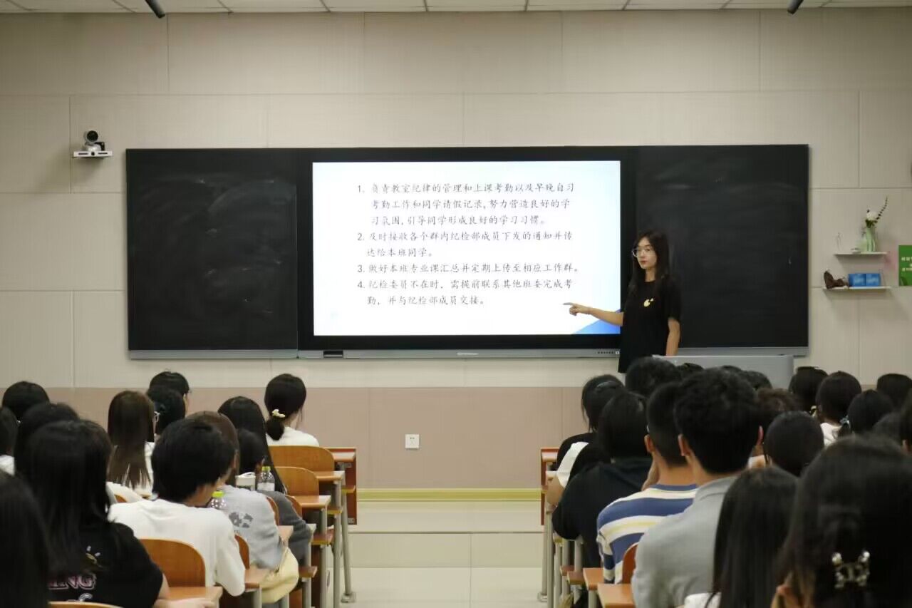 会议内容从课堂及早晚自习的纪律管理、手机入袋管理、日常考勤办法及奖惩措施等方面展开,进一步明晰各班委职责。会上,纪检部成员强调各班班委作为班级的组织者和协调者,应负起应尽的责任,履行各自义务,齐心协力共同管理班级。在日常课堂中,班委需严格监督班级同学手机入袋,督促同学认真听讲,提高同学们的学习积极性;在考勤工作中,班委需仔细把握好考勤时间,认真进行点名,同时积极配合纪检部工作。班委作为班级代表,应起好带头作用,为班级同学树立榜样模范,自身做起杜绝违纪行为,为班级营造良好的学习环境。