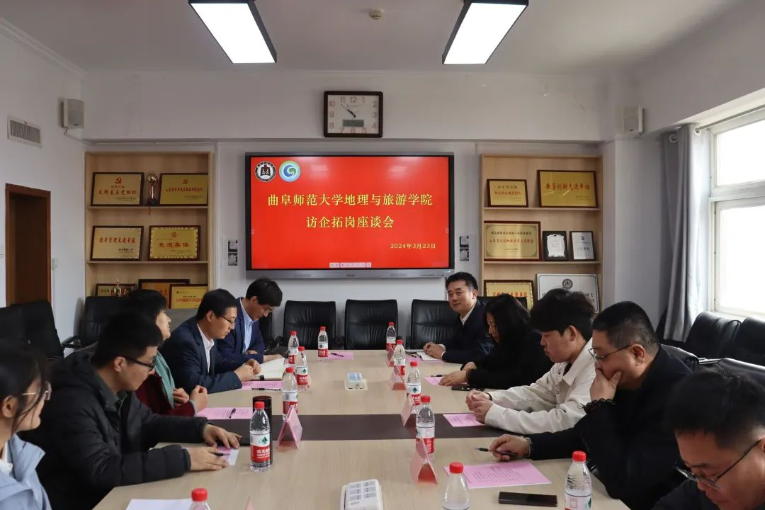 召开访企拓岗座谈会。座谈会邀请了临沂假日国际旅行社、临沂兴华高级中学、青岛大润丰研学旅行公司、山东正衡土地房地产评估勘测有限公司、升禾(山东)检测科技有限公司、日照文理中等职业学校、日照市上岸教编培训中心、大圣光华教育集团、山东信和土地房地产资产评估测绘有限公司、临沂双语学校、山东蓝海酒店股份有限公司、日照农发集团、日照贻海置业有限公司喜来登酒店分公司、日照木棉花酒店、广州知贤道远信息服务有限公司济南分公司共十五家企业参加。学院党委副书记刘伟、副院长吴军、院长助理李宝富、辅导员赵岩、田青参加座谈会。