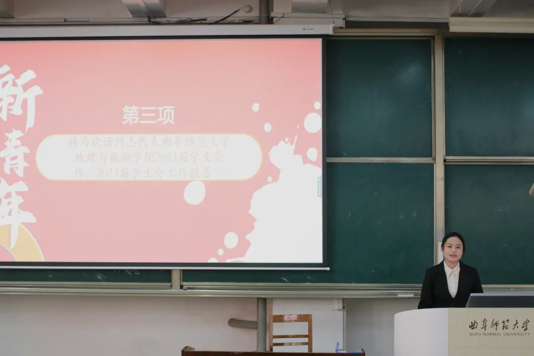 会上,马晓诺代表学院2023届学生会作《关于2023届学生会工作报告》。她表示:全体2023届学生会述职期间积极配合学院举办丰富多样的活动,包括红色经典活动、体育竞技、学术竞赛等,这些活动不仅提升了学生的身心素质,也营造了浓厚的学术氛围。同时,学院鼓励同学们参与校级以上活动,取得了显著成绩。这些成果的取得,离不开老师的精心指导和团委学生会成员的共同努力。作为团委学生会的一员,深感团队成员的热情与奉献,并对大家的团结合作表示衷心感谢。最后强调学院团委、学生会在学院发展中的重要作用,并呼吁大家继续发扬优良传统,以更高的热情和更扎实的作风为学生工作贡献力量。