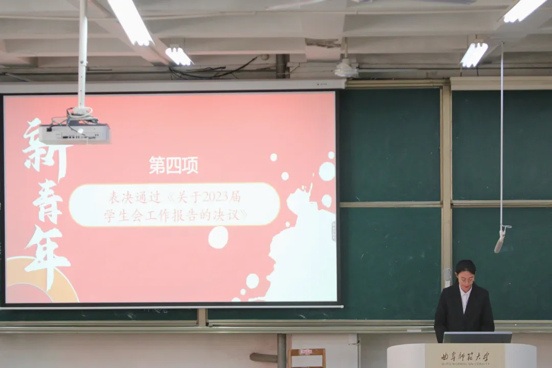 会上,2023届主席团成员刘书铭宣读《新一届学生会委员会委员正式候选人名单》以及投票规则。全体代表郑重的投出自己的选票。经过统票,2024届团委学生会主席团成员当选新一届学生会委员会委员。随着中国共青团团歌的奏毕,大会结束。