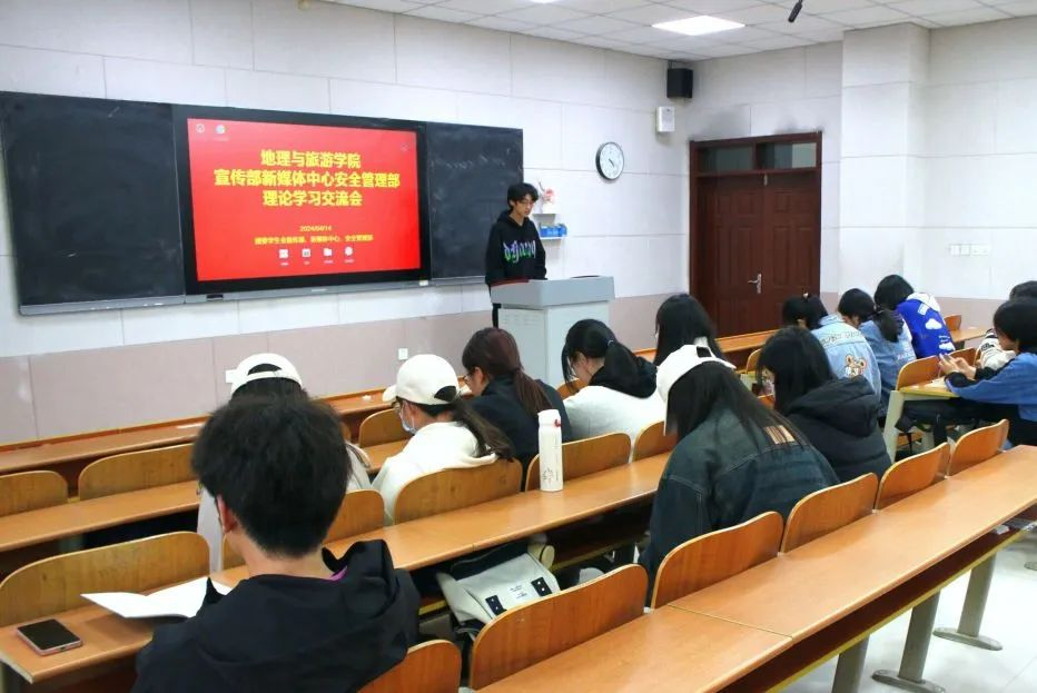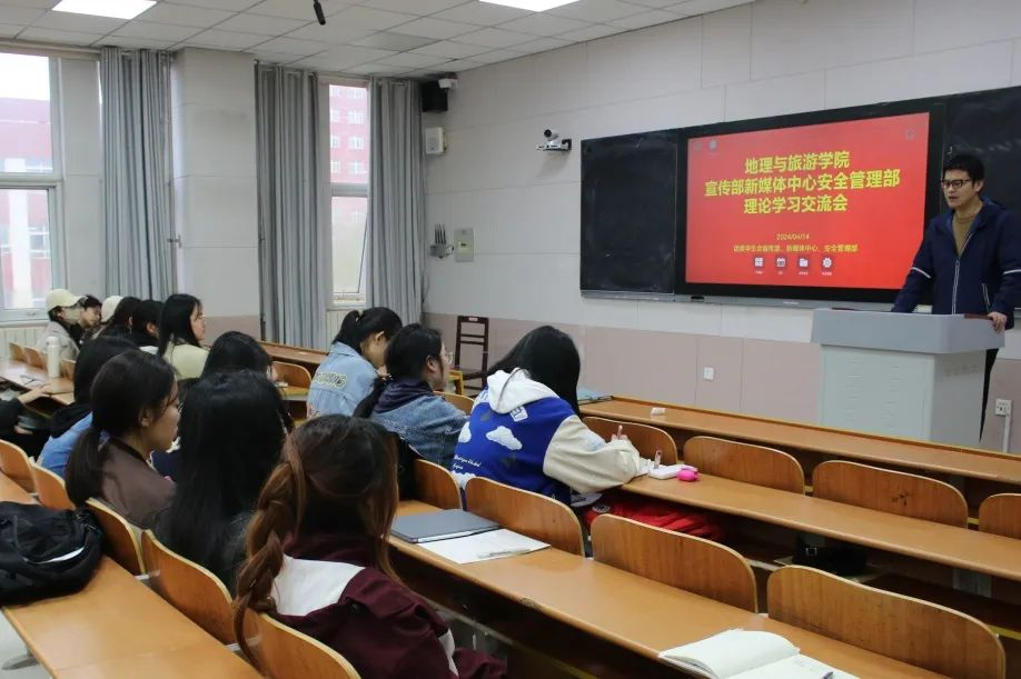 于S204召开新闻宣传及安全管理理论学习交流会。分管辅导员田青出席。