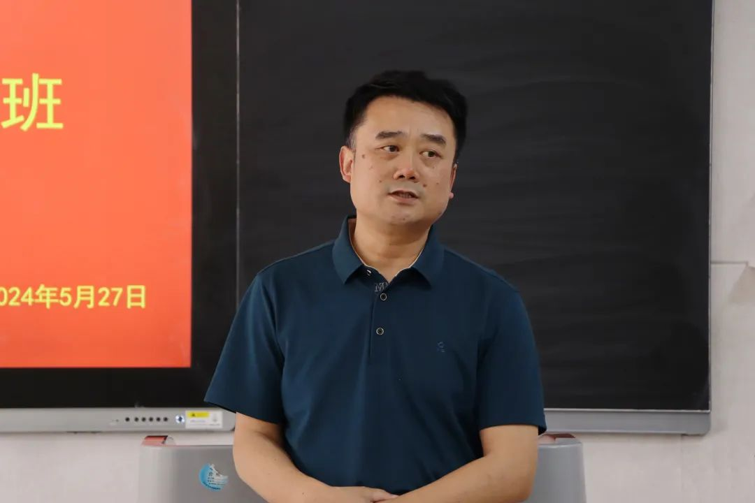 党委副书记刘伟主持,党委书记苏占兵、班主任张琦博士、团委书记李梅、2022级辅导员陈鑫及全班同学参加。