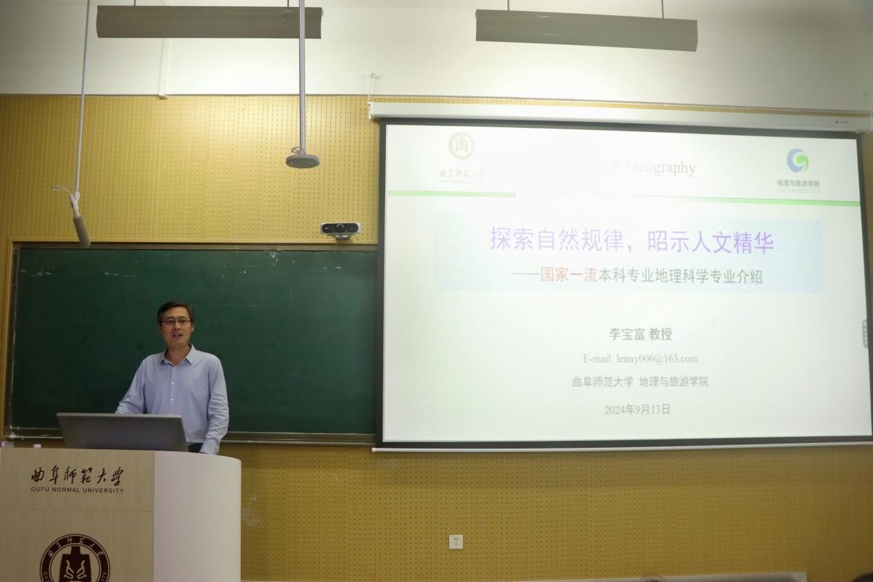 在地理科学专业认知和培养方案解读会议中,李宝富主任为同学们详细解读地理科学的专业内涵。他以“探索自然规律,昭示人文新声”为主题,分析地理学的概念,阐释地理学的发展历史,展示地理学的科研成果及社会需求,解读地理学的专业素养,并将青藏铁路的修建、沙漠公路的建设和新疆科考作为案例,强调地理学的时代意义,分析时代新技术对学科发展的影响,阐明地理学与经济社会发展的密切关系。同时,强调地理学是经世致用的学科,鼓励同学们努力学习,为国家经济社会发展贡献自己力量。周维国主任重点向学生们向讲解地理科学专业的培养方案,分别从地理科学开设课程、培养目标、学科体系,专业概况等进行详细阐述,并详细解读“合格+特长”实践教学模式,以历届学生的板书练习和教学技能大赛成绩为例,着重讲解地理科学专业的师范特色,列举优秀毕业生案例,展示地理科学雄厚的师资力量,体现麻豆在线 学生培养的优秀成果。并希望他们能志存高远,脚踏实地,认真规划大学四年的学习生活,向着专业的顶峰迈进。