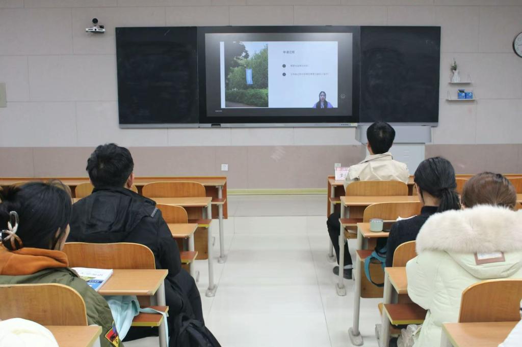 讲座伊始,刘伟对我校近几年的出国留学申请情况进行简单分析,强调大学生拓宽国际视野以及积累国际学习经验的重要性。讲堂上,陈路凝分享个人在学校与专业选择、申请流程以及语言考试方面的经验,让同学们得以了解她出国留学的背景及具体过程。此外,她还针对同学们感兴趣的问题进行回答,诸如学校的课程设置、学习方法以及项目与实践等内容,帮助同学们对出国留学诸项事宜有了更深入的了解。最后,陈路凝向同学们展示部分自己在国外留学的日常,并分享相关经验与建议,鼓励更多想要尝试出国深造的同学大胆尝试、勇敢追梦,同学们在此次活动中受益匪浅。