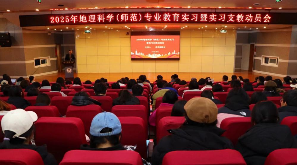实习工作顺利开展,1月9日,学院于图书馆报告厅举行2025年地理科学(师范)专业教育实习暨实习支教动员会。学院党委书记苏占兵、党委副书记刘伟、党委委员兼教学督导刘志刚、地理科学教研室主任周维国及全体教育实习指导老师出席,2022级地理科学(师范)专业全体学生参加。副院长吴军主持动员会。