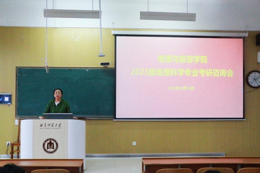 考研咨询会上,跨考考研院校规划师翟晓蕾以地理学科考研特性为切入点,围绕“院校专业选择”与“备考逻辑”两大核心展开讲解。她首先对比考研与高考志愿填报差异,强调考研单专业选择的特殊性,她提醒大家,精准选择是规避风险的关键;随后明确时间规划节点。同时,翟晓蕾还详解考研“三条线”、复试比例、专业课给分差异及公共课批卷的地域影响,提醒同学们优先夯实数学、英语基础,提前规划协调教学实习与考研复习时间。刘伟补充强调,当前就业形势下,考研是提升竞争力的重要途径,鼓励同学们结合地理学科优势与个人能力,充分利用资源提升备考效率。