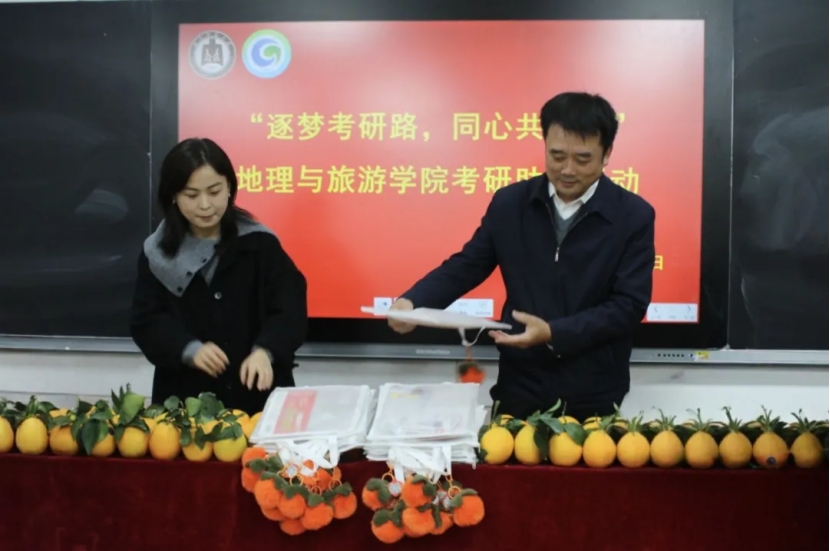 活动伊始,针对考研冲刺期学子普遍存在的焦虑情绪,刘伟结合自身考研经历与学子深入交流,强调冲刺阶段心态平稳与坚定决心的重要性,鼓励大家正视压力、突破关键节点,坚持完成备考全程。结合当前就业形势,他重点分析考研的必要性,明确国家已明确中小学教师以研究生学历为主的发展方向,多数中学招聘将研究生学历列为硬性条件,希望同学们保持定力、全力以赴。李萍以“剩”者为王激励学子坚守初心、冲刺到底,祝愿大家顺利通过初试、挺进复试。活动尾声,学院延续历年暖心传统,为每位考研学子送上象征“硕果累累”的橙子、寓意“柿柿如意”的文具套装及承载殷切祝福的钥匙扣,每份礼品均饱含学院对学子金榜题名、圆梦理想学府的美好期许。