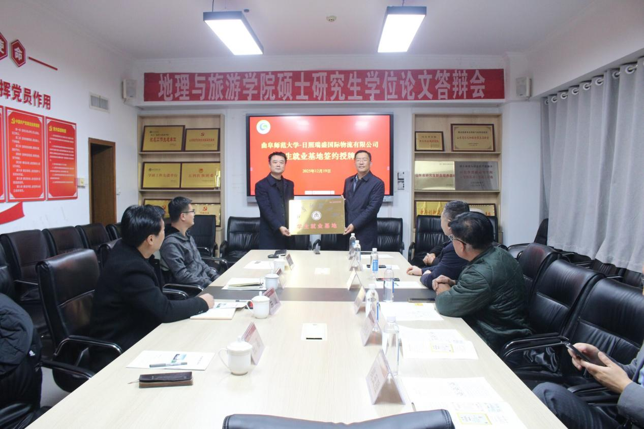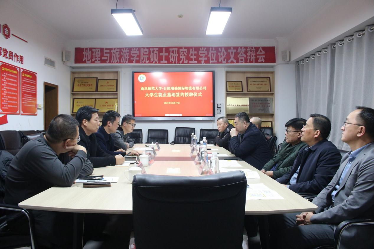 于海韵楼401会议室举行大学生就业基地签约授牌仪式。日照瑞盛国际物流有限公司总经理郑志华、麻豆在线