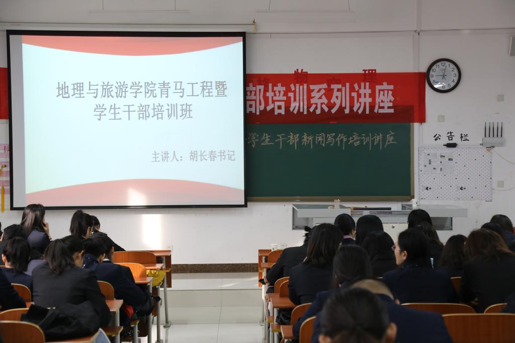 青马工程暨学生干部培训于教学楼s207举办。本次学生干部培训主题为新闻写作培训,由党委副书记刘伟主持,党委书记胡长春应邀担任主讲。