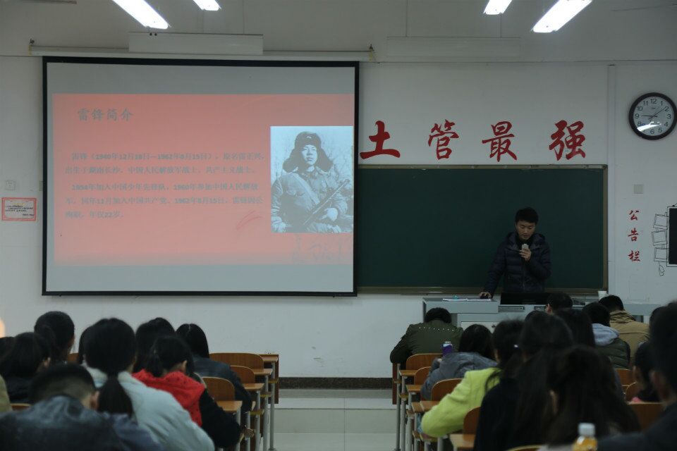 讲座伊始,张尚鹏为同学们简单介绍了雷锋事迹和雷锋日记,使同学们深入了解并学习了雷锋的奉献精神、“钉子”精神和“螺丝钉”精神。在观看雷锋同志以前的视频资料时,大家感触颇深,反响热烈。随后,张春晓阐述了“一学一做”的核心观点,强调当代大学生应牢牢把握“学习总书记讲话,做合格共青团员”这一主题,以严实作风抓好“一学一做”教育实践各项任务落实,切实加强对“一学一做”教育实践的组织领导。通过共同观看习近平总书记的重要讲话视频,同学们对“一学一做”教育实践活动有了更深刻理解。