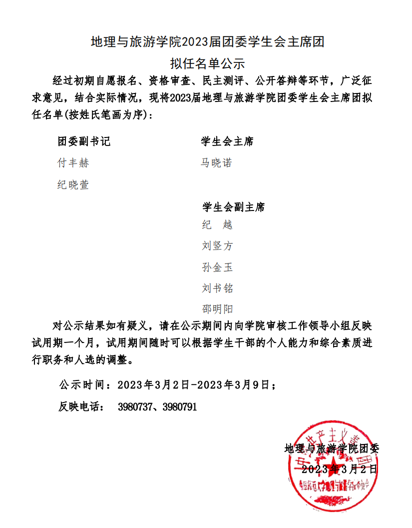 麻豆在线 2023届团委学生会主席团拟任名单公示