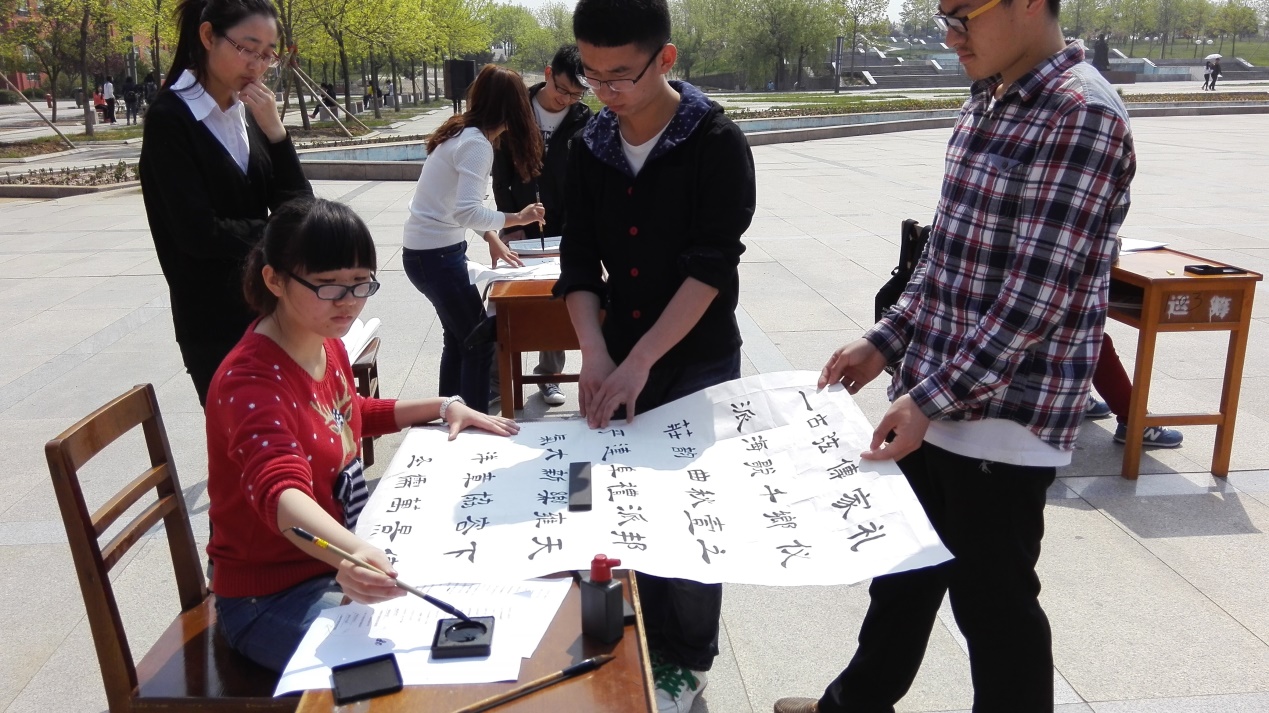 “弘扬传统文化,书写艺术人生。”书法艺术具有悠久的历史,贯穿了整个中华文明史,其独特的魅力在中华文明历史上具有不可磨灭的重要地位。它穿越了时间的限制,成为民族灵魂的一部分。但随着信息时代的快速发展,快节奏的生活将我们禁锢在紧张与忙碌之中,越来越少的人能够静下心来享受书法艺术的恬淡和宁静。针对这一现象,习之书社每年春季都会举办“现场书法大赛”,目的是增添浓厚的校园文化氛围,继承和弘扬传统文化艺术,展现书法文化的魅力,提高当代大学生的审美情趣和艺术修养,增进书法爱好者之间的交流。