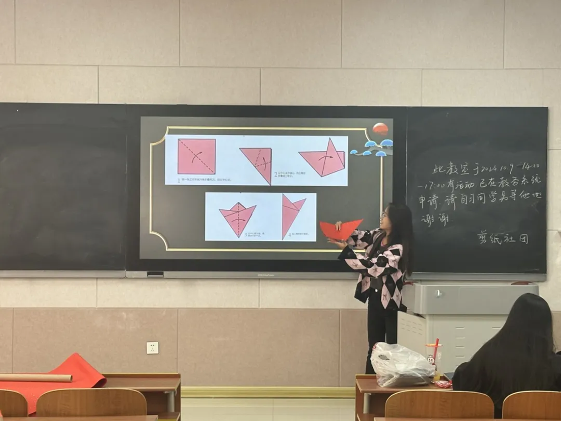 剪纸协会于S203举行“剪艺无界,文化共融”剪纸授课活动,参与人员为剪纸协会成员和留学生团。本次活动由高文婧同学担任主讲人,共有9位留学生参与本次授课活动。