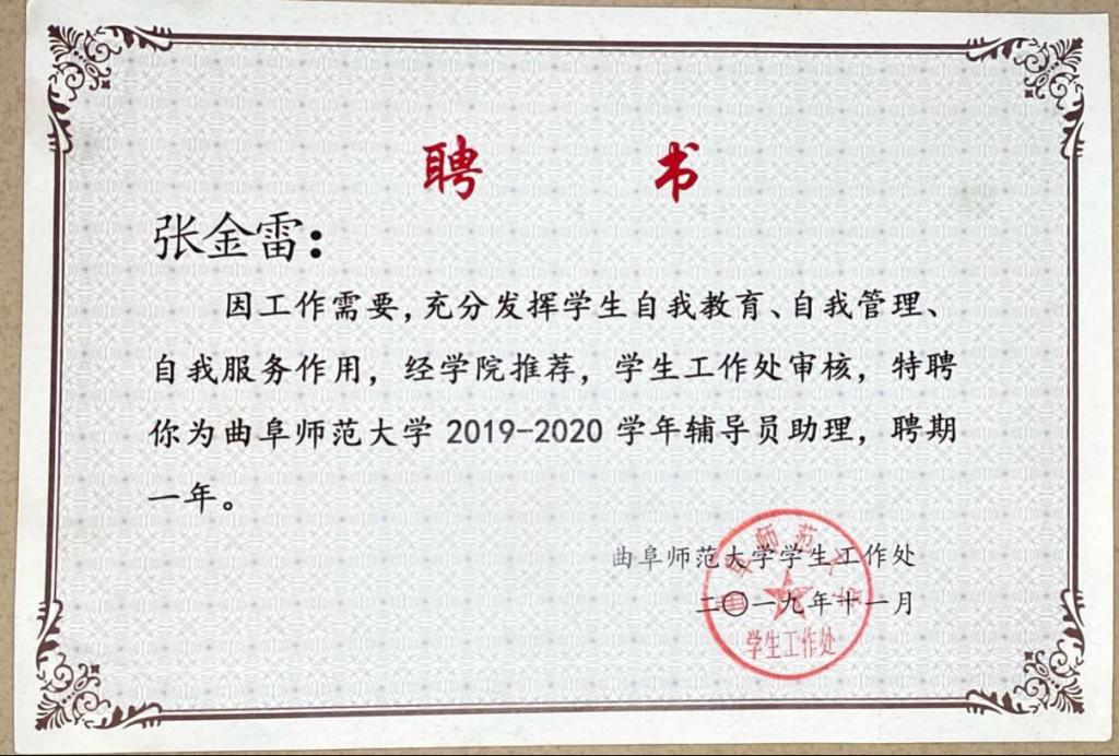 2019-2020学年辅导员助理。曾获2019 年全省大中专学生志愿者暑期“三下乡” 社会实践活动优秀学生,麻豆在线
