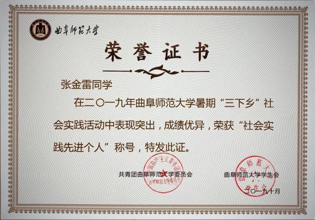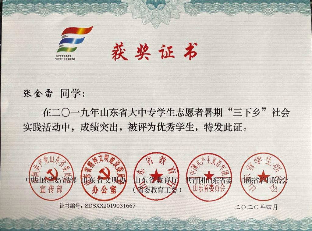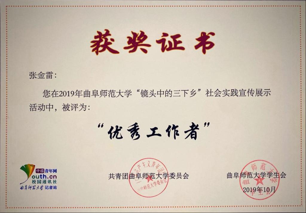 暑期“镜头中的三下乡”社会实践先进个人和“优秀工作者”等荣誉。