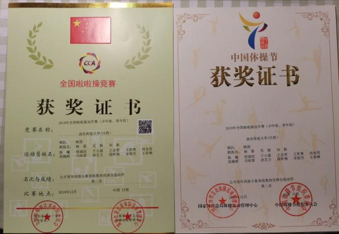 校优毕业生;山东省大学生地理教学技能大赛省二等奖;2019年全国啦啦操冠军赛公开青年丙组小集体组花球自选动作第二名;日照市第六届运动会“新世界杯”啦啦操比赛团体第一名;2017-2018年度校一等奖学金;2018-2019年度、2019-2020年度校二等奖学金。
