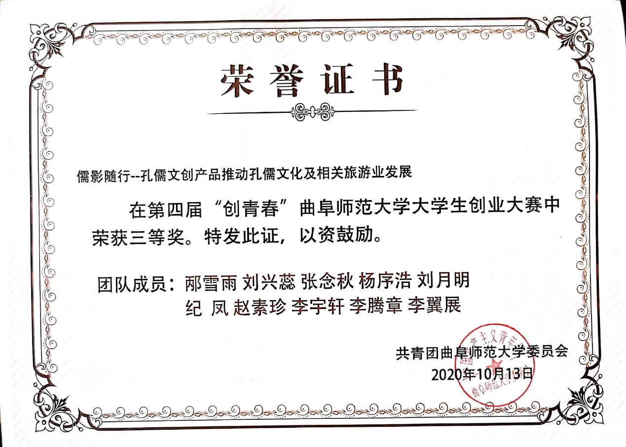 2018.10,第十届山东省大学生科技节——山东省大学生创业计划大赛,省级三等奖