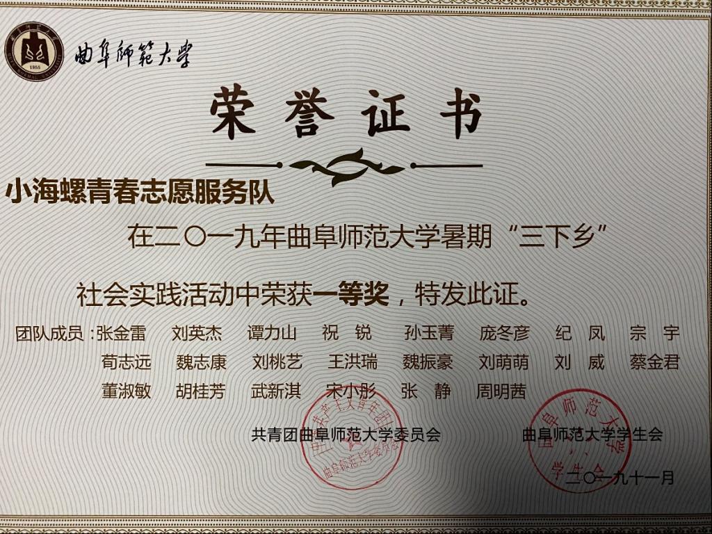 暑期“镜头中的三下乡”社会实践宣传活动,评为“杰出队伍”两项