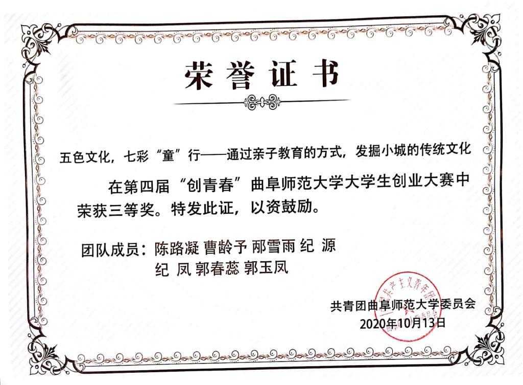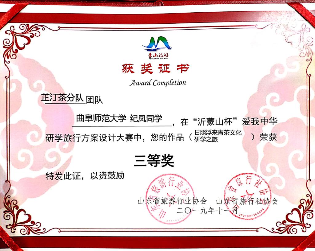 2019.11 ,“沂蒙山杯”爱我中华研学旅行方案设计大赛,省级三等奖