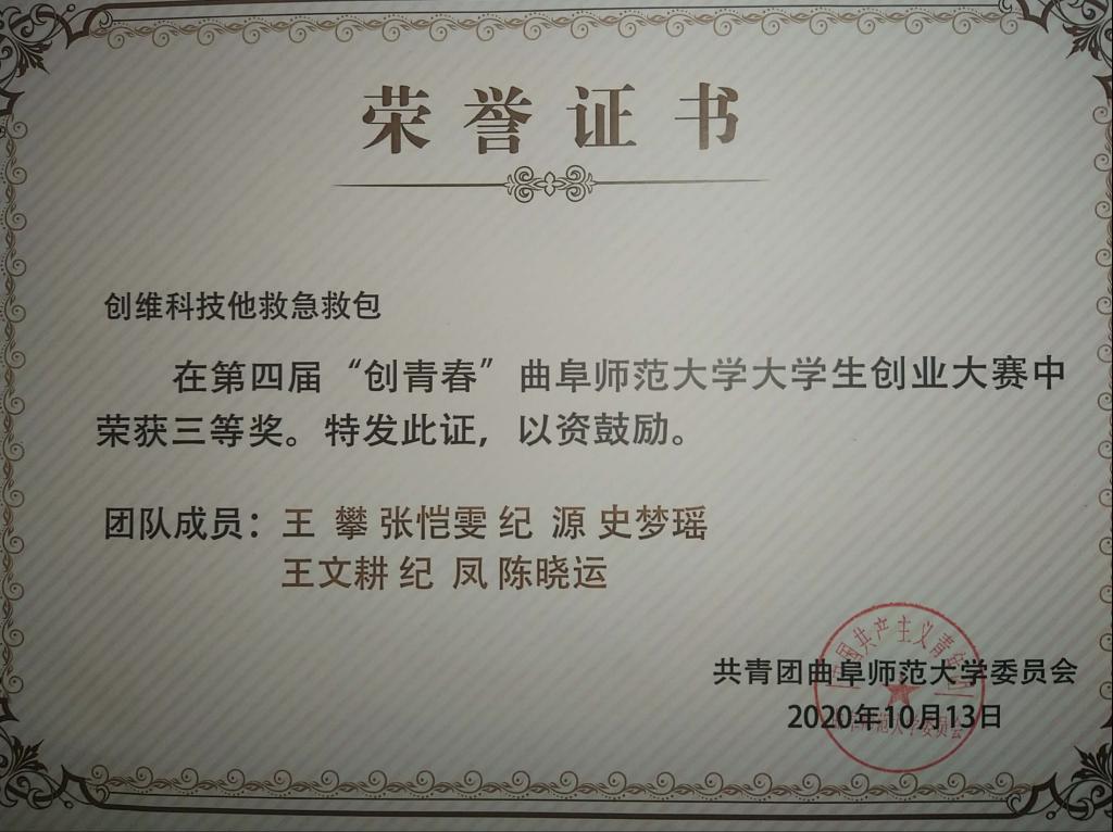 2020.10,第十二届山东省大学生科技节——山东省大学生创业计划大赛,省级三等奖
