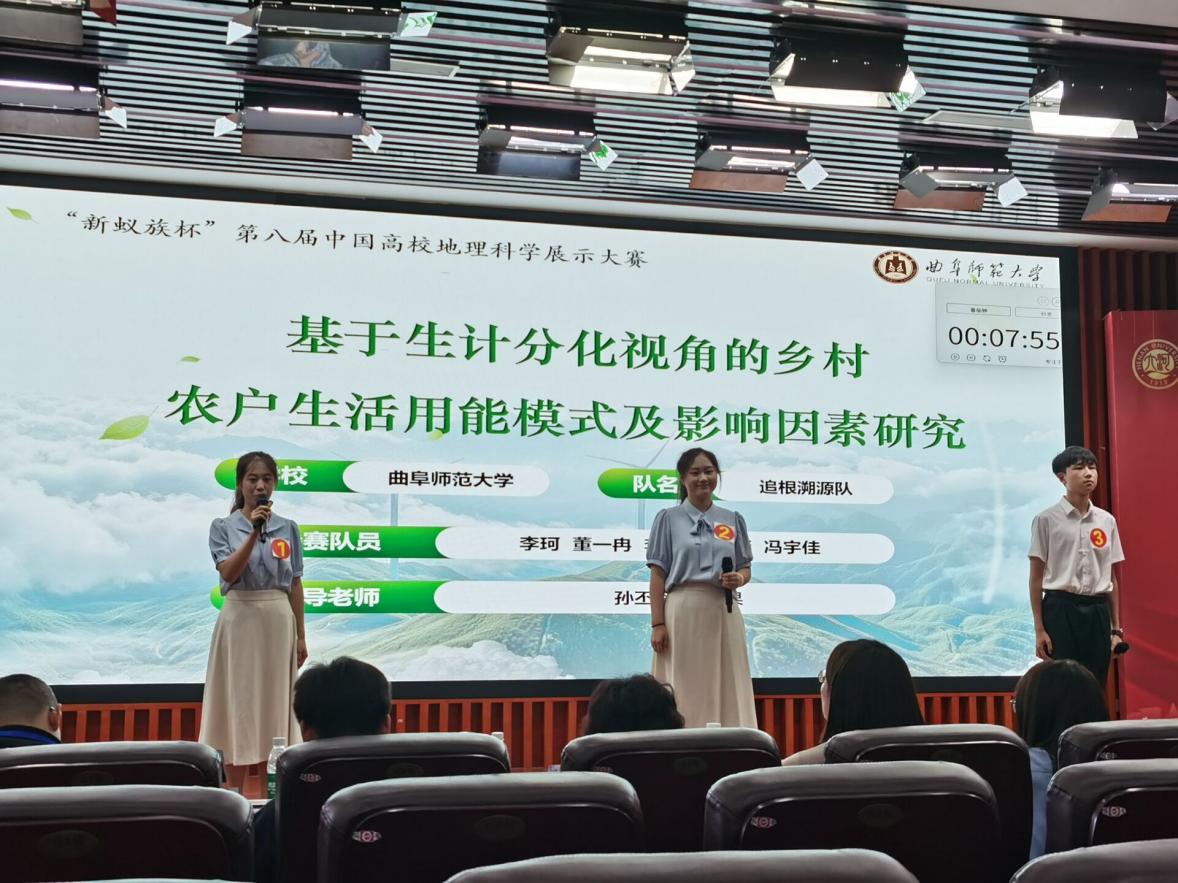 总决赛赛场上,麻豆在线 2022级地理科学(师范)专业甘唯萌、姚娜、蒋孟君同学和2023级地理科学(师范)专业李珂、李冉、冯宇佳同学在汇报展示过程中,凭借扎实的地理专业素养,展现出卓越的学习能力、高效的团队协作力、清晰的逻辑表达力和积极向上的精神风貌,赢得了现场评委与观众的一致好评。