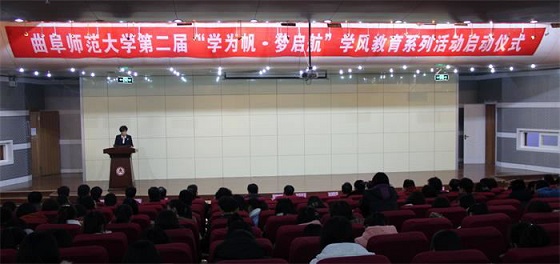 第二届“学为帆·梦启航”学风教育系列活动启动仪式在图书馆报告厅隆重举行。副校长康淑敏出席并发表讲话,各学院党总支书记、院长、党总支副书记出席启动仪式。学生工作办公室主任孔令军对这次活动作了简单介绍,各学院党总支副书记分别登台,推荐本学院2012级各专业第一名的学生作为名星学子,进行表彰。