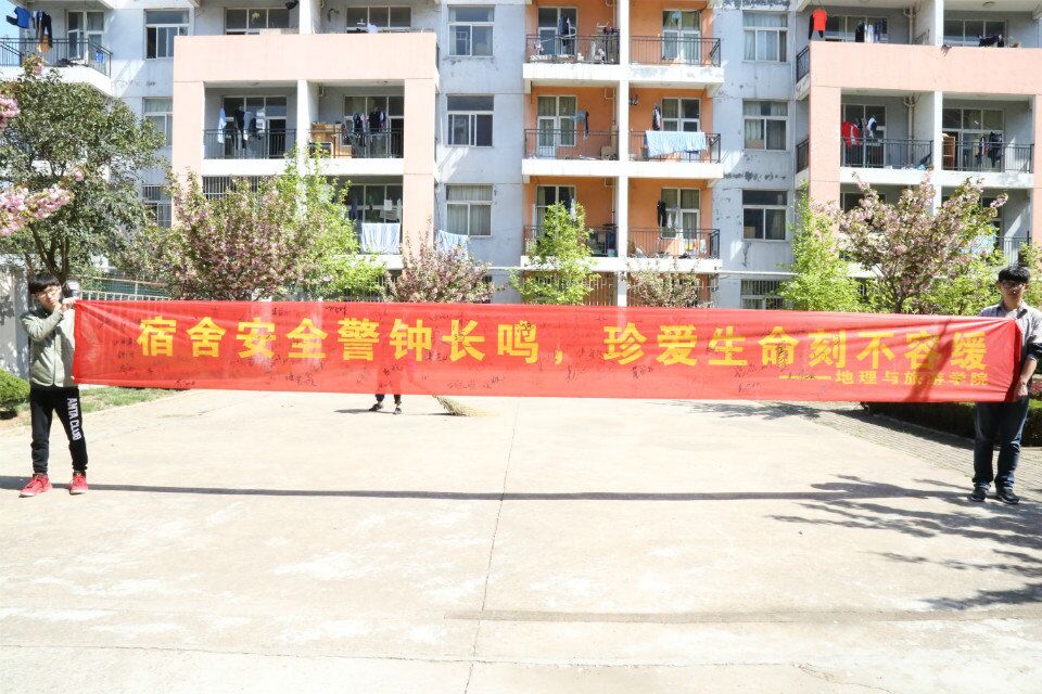 伴随着火警警报信号发出,同学们按照消防演练的标准方案有条不紊的进行,有序撤离火灾现场,疏散到安全地带。整体疏散到位后由宿管部人员清点人数,确保每个人的安全情况。紧接着王凝恺给大家简单讲解了宿舍的安全隐患,希望同学们能够重视消防演练。随后,宿舍楼管理员结合自己丰富的经验给大家提出了宝贵的意见,使同学们受益匪浅。最后同学们在条幅上签下了自己的名字来响应本次活动。