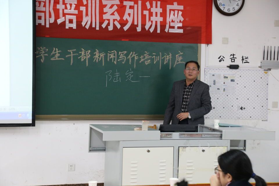青马工程暨学生干部培训于教学楼s207举办。本次学生干部培训主题为新闻写作培训,由党委副书记刘伟主持,党委书记胡长春应邀担任主讲。