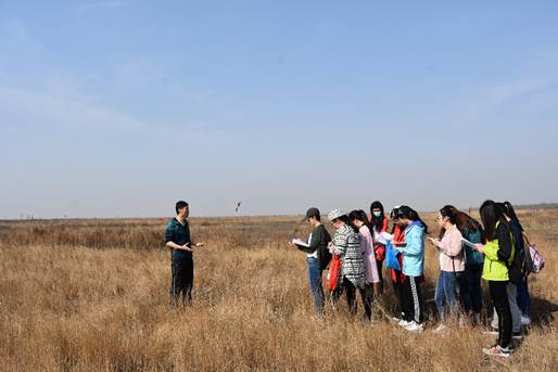 4月14日,首先参观了东营市城市规划展览馆,学子们被东营市“城水相依,水绿交融”的独特魅力所吸引。随后,同学们参观了东营市植物园,刘飞老师对植物园典型植物进行了介绍。4月15日,荆延德老师首先讲解了黄河三角洲特殊盐碱地土壤的形成过程、形成原因、改良措施等,然后同学们进行了土壤剖面的挖掘,并取样和分析剖面中各层土壤的形态特征。随后,李宝富老师为学子们生动讲解了黄河入海口的水文和气象特征,刘飞老师带领学子们进行了群落种类取样。最后,参观了中科院黄河三角洲滨海湿地生态试验站,生态实验站的工作人员为同学们介绍了观测站的主要组成部分以及站点的主要功能。4月16日,王世亮老师在沂河的源头田庄水库详细地讲解了水库水环境监测指标。学子们一边在沂河上游听老师讲解专业知识,一边沿着河流“探险”,野外实习别有一番滋味。4月17日,王晓青老师加入鲁山国家森林公园的生态调查,为学子们生动地讲解了鲁山的形成过程以及地貌特征,使得学子们对鲁山的认知更加深入。4月18日,王世亮老师和李宝富老师分别从水质调查指标和水文气象指标两个方面介绍了葛沟橡胶坝和小埠橡胶坝对生态环境的影响。4月19日,学子们对微山湖二级坝附近的水情要素以及水质状况进行了测定。随后,学子们在指导老师的讲解下,对微山湖湿地公园的水情、气象要素以及植物群落进行了考察。4月20日,学子们来到太平国家湿地公园,在林业站安站长的讲解下,对湿地公园不同塌陷年限的塌陷塘植物群落、塌陷区气象、水文、环境要素有了深刻的认知。