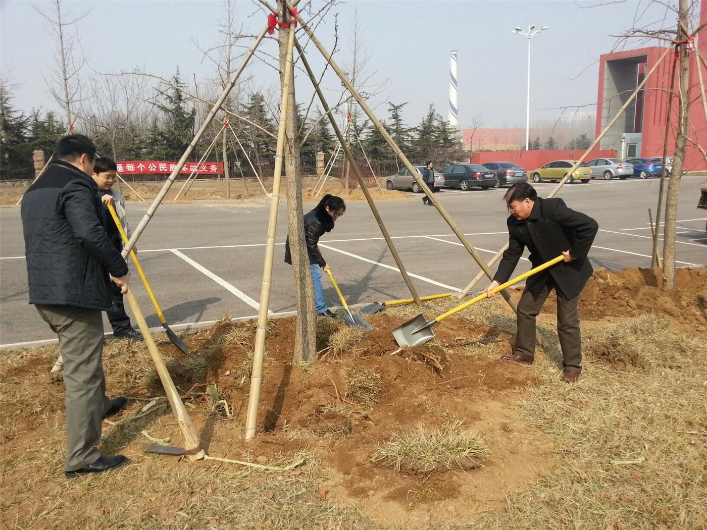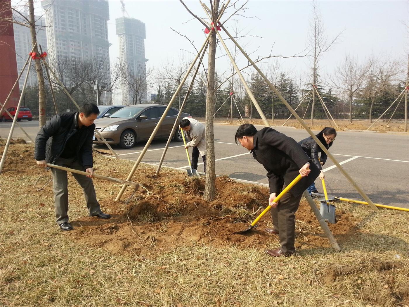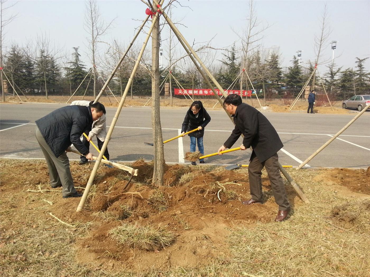 党总支书记胡长春,党总支副书记杨兴防,团总支书记岳峰,12级辅导员秦霞一行人来到了图书馆的空地旁,进行一年一度的植树节义务植树活动。