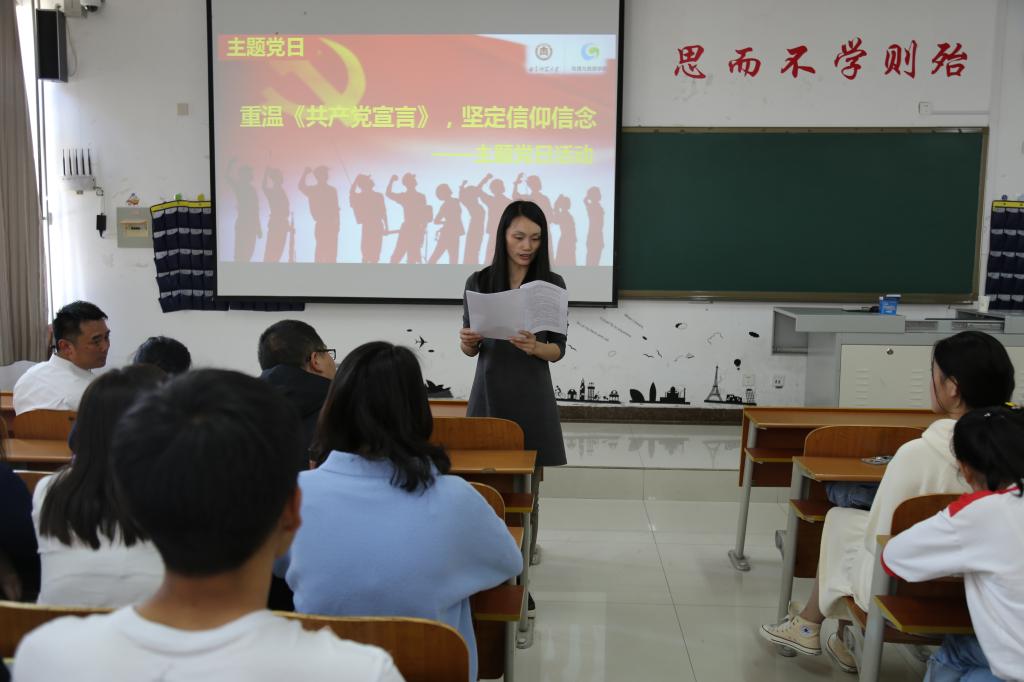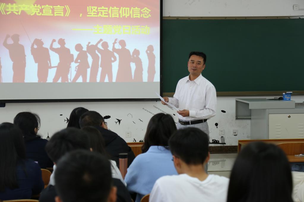 本科生、研究生党支部于S207举行“重温《共产党宣言》,坚定信仰信念”主题党日活动。学院党委副书记刘伟出席会议,全体党员参加活动,活动由本科生党支部书记宁晓文主持。
