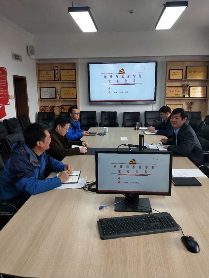 2020年4月8日下午2:00,学院党委在党员活动室召开会议,专题研究学院党建工作,党委书记苏占兵、院长张全景、党委副书记刘伟、副院长吴军,党委委员于伟、刘志刚参加会议,苏占兵主持会议。