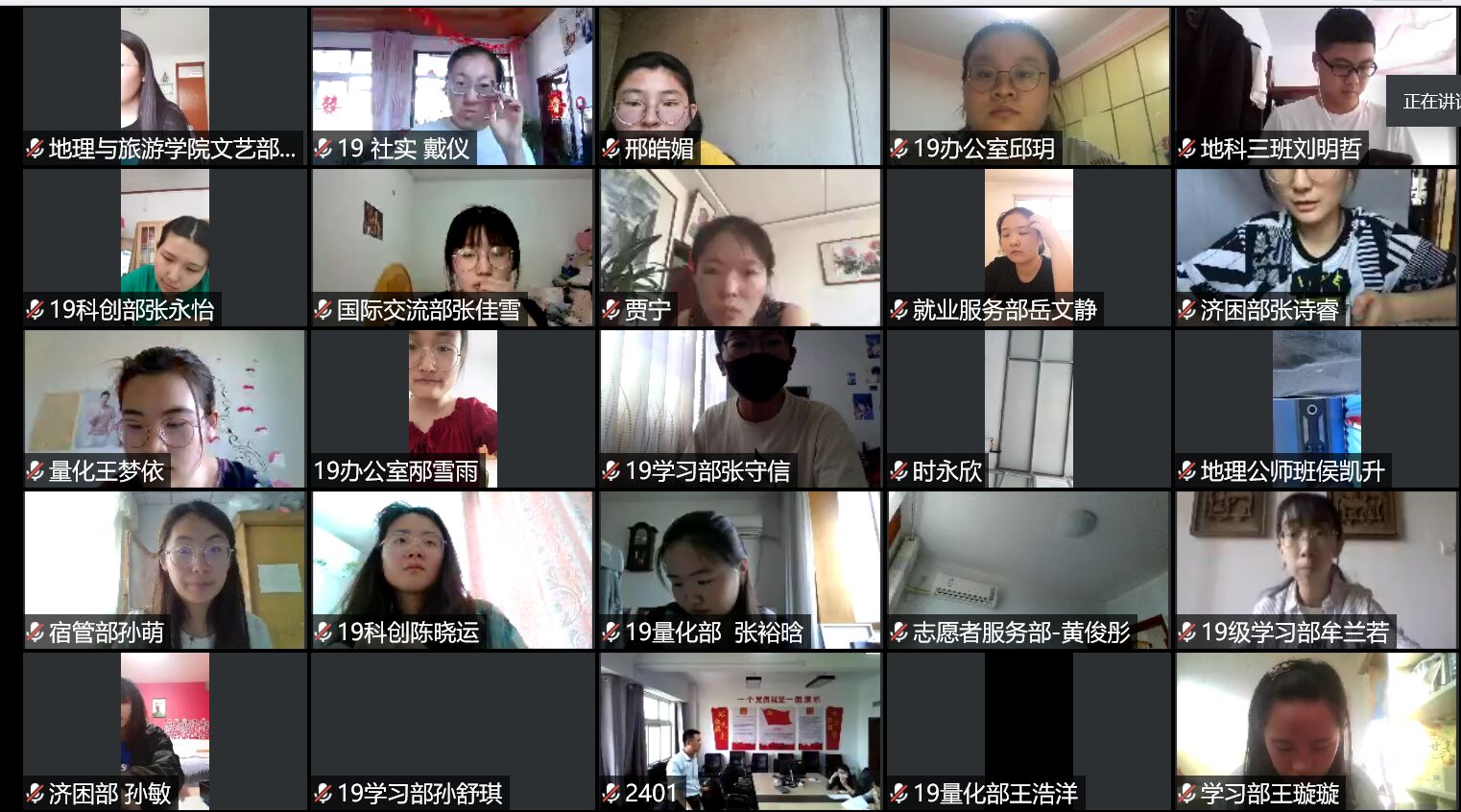 院长张全景,党委副书记刘伟,团委书记宁晓文,研究生辅导员赵岩,2019级辅导员李梅,2017级辅导员董青在学院会议室听讲,学院团委学生会全体同学、学生党支部全体党员、入党积极分子150人聆听授课。