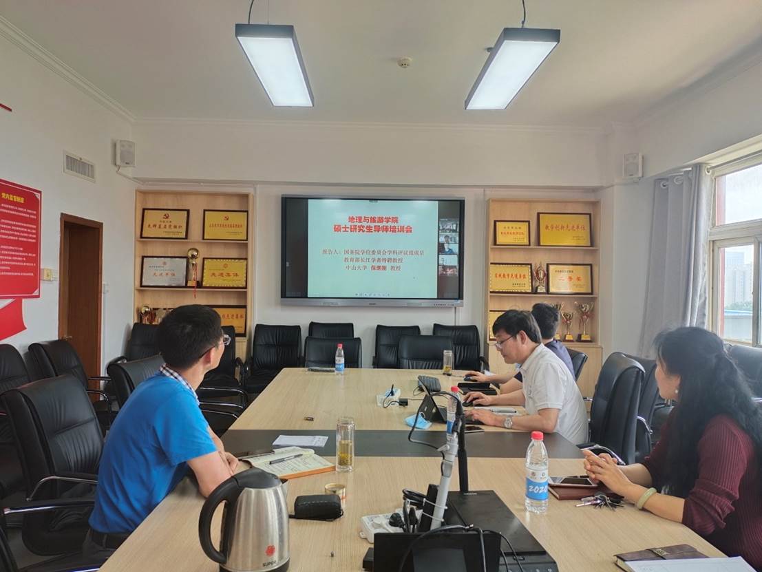 导师培训会阶段,保继刚教授结合自己多年来指导研究生的经历和心得,指出一名合格的导师,尤其是年轻导师,自身要不断积累,尽快成长,才能更好的育人。保教授比较了博士研究生和硕士研究生在培养上存在的明显差异,认为硕士研究生需要“学会做研究”,导师应给学生指明具体的科学问题,而博士研究生需要创新,导师只需要给出研究领域,让学生自己进行探索,提出科学问题并解决问题。导师培训会后,保教授进一步讲解了地理学博士一级学科申报的注意事项。认为申报博士一级学科要在满足教师队伍规模、科研成果要求等基本申请条件的基础上,进一步凝练具有鲜明地域特色的研究方向,并围绕特色方向打造一批能被国内外同行认可的标志性成果。最后,院长张全景教授介绍了学院的教师团队和研究基础,并提出了未来学科建设的新增长点。